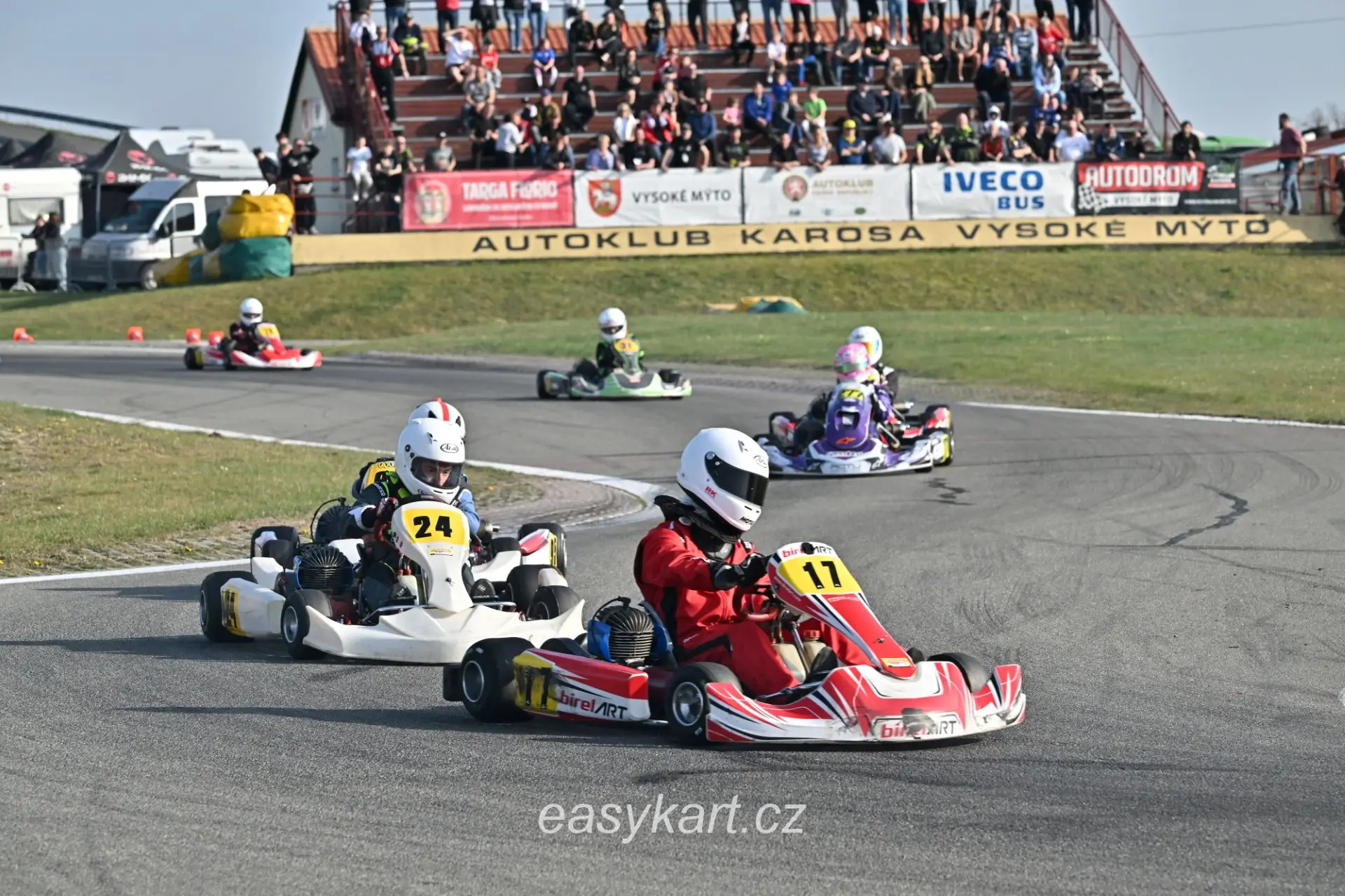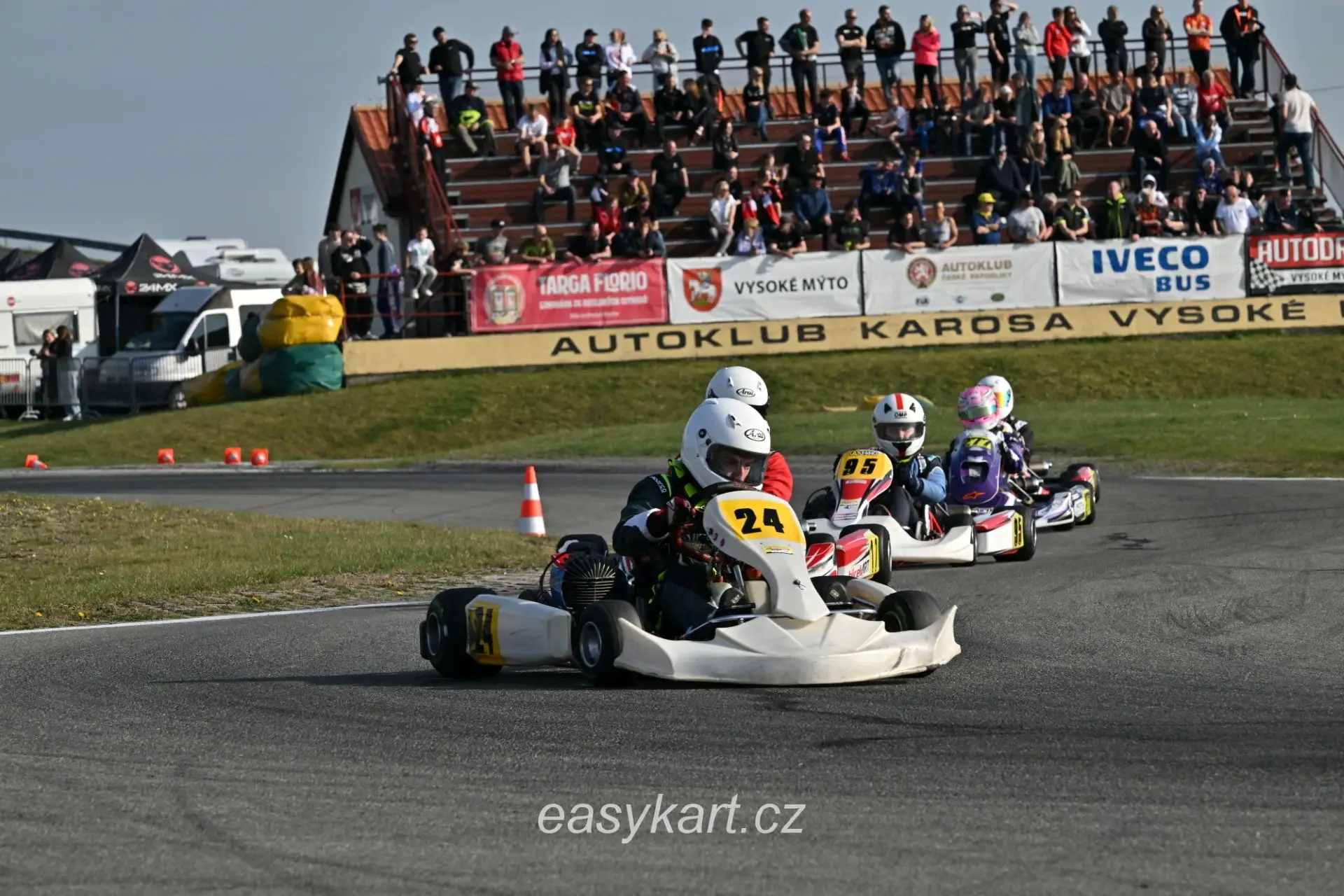 Rychle jsem do ní usedl a s napětím vyčkával na pokyn. Předtím bylo ale stále možné pozorovat závodníky a mechaniky dovážející jejich stroje. Když už všichni seděli ve své motokáře, komisař otevřel bránu a my se po dlouhé době zase ocitli na trati. Přes dvoutýdenní pauzu jsme stihli dovážit zbylých 5 kg, takže jsem očekával, že hodnoty časů se o něco navýší. Přes první zatáčku v úvodním kole prošli skoro všichni včetně mě a já si začal připravovat pneumatiky na rychlá kola. Bylo cítit, že to při první jízdě klouže, ale během pár zatáček se pneumatiky dostatečně ohřály a já si mohl dovolit jet rychleji. První kola se pohybovala okolo 49,5 s, z čehož pár z nich nebylo moc čistých. Stále jsem nemohl pořádně dostat grip z pneumatik a zajíždět kola ještě o něco rychleji. Když už se ale zdálo, že grip v gumách je, motokára při nájezdu na kopec ztratila výkon. Okamžitě jsem stiskl červené tlačítko pro ukončení chodu motoru. Tím Easyna ztichla. I já jsem ani nedutal a pouze si v duchu říkal: „Co to sakra zase je?“ Nakonec za mnou přiběhl traťový maršál a ptal se mě, zda kára startuje. „Ne, motor ztratil výkon, tak ho nebudu raději trápit,“ odvětil jsem. Pomohl mi dostat motokáru z trati na trávník a zajistit tak, že dráha bude volná. Potom jsem už pouze stál a pohledem zkoumal, co se asi tak přihodilo. Mé minimální zkušenosti s technikou motokáry samozřejmě nepomohly, a tak jsem si musel počkat na výsledek až do paddocku. Mezitím jsem se smíšenými pocity pozoroval mé soupeře, jak projíždějí okolo. Chvílemi jsem si říkal, že je to pěkný pohled, ale především mě mrzelo, co se stalo. Po nějaké době, když už všichni zajeli do pit lane, pro mě přijel „odtahový vůz“. Známý řidič mi sdělil pokyny o tom, jak správně držet brzdu při přesunu. Pak už mi společně s maršálem naložil motokáru na nápravu, já se do ní posadil a vyčkával, co bude následovat. Vtom se auto rozjelo a já se netradičně začal s motokárou pohybovat po okruhu. Chvílemi jsem měl obavy, že bych mohl nečekaně pustit brzdu a sjet z nápravy, proto jsem se bedlivě soustředil na její pevný stisk. Zhruba každých 10 metrů se celá náprava rozhrkávala a vibrovala. Kolikrát to bylo tak výrazné, že jsem drobně poskočil v sedačce. Tentokrát jsem si to celkem užíval, ale nerad bych byl, kdyby se mi něco podobného stalo při důležité závodní jízdě.