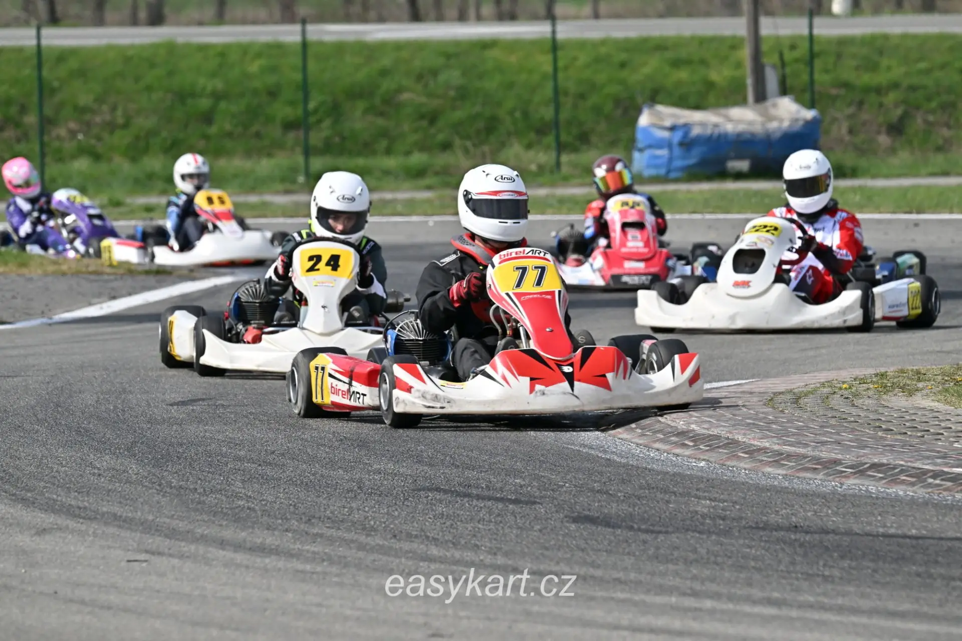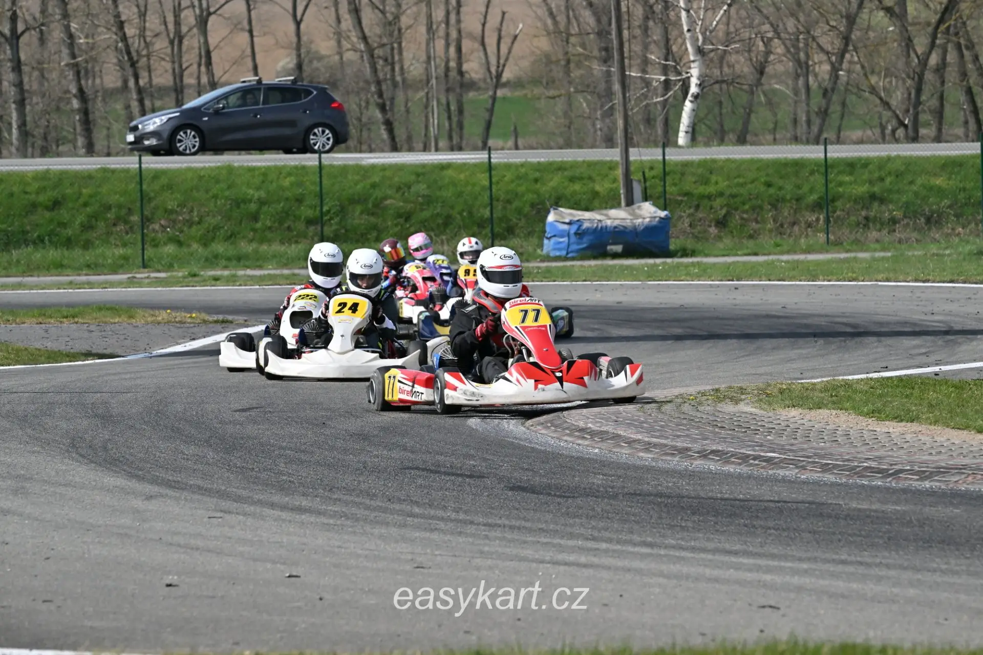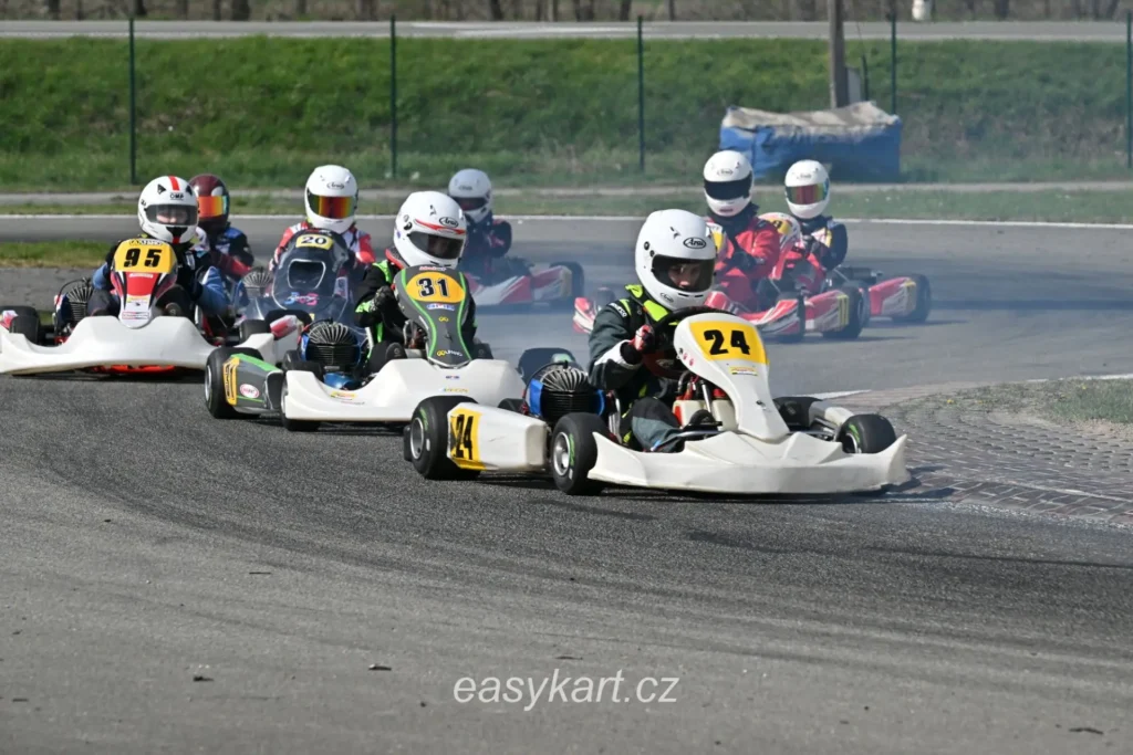 Na předstartovním roštu už bylo zaplněno a já s nervozitou vyčkával na zelenou vlajku. Přede mnou se řadilo okolo 10 motokár. Mezi nimi a mnou byl ale jeden rozdíl. Já na rozdíl od nich neměl jistotu, že se vůbec tréninku zúčastním. Táta mi ještě před startem dal pár drobných rad a mohlo se vyrazit. Postupně bylo slyšet, jak se všichni za sebou vrhají na okruh. Když přišla řada na mě, neváhal jsem. Nastartoval a rozjel se po předstartovní rovince. Avšak ne na dlouho. Motor okamžitě po rozjezdu zhasl a kára zastavila. Můj táta společně s panem Vondrákem přiběhli a nadzdvihli moji novou dvacetčtyřku, tak aby zadní kola neměla přebytečný odpor při startování. Dočasně to pomohlo a já si v tu chvíli ulevil. Při průjezdu cílovou rovinkou jsem se snažil dostat pneumatiky a motor do provozních teplot. Už jsem byl tedy skoro připravený zrychlit, když vtom kára na výjezdu z první zatáčky výrazně zpomalila. „To dělám něco špatně?“ divil jsem se. Tímto způsobem jsem ujel následujících 30 metrů, pak kára zase chytila tah. Bohužel při nájezdu na kopec ho definitivně ztratila a mně v tu chvíli zbývala jediná možnost, jak se dopravit do depa…